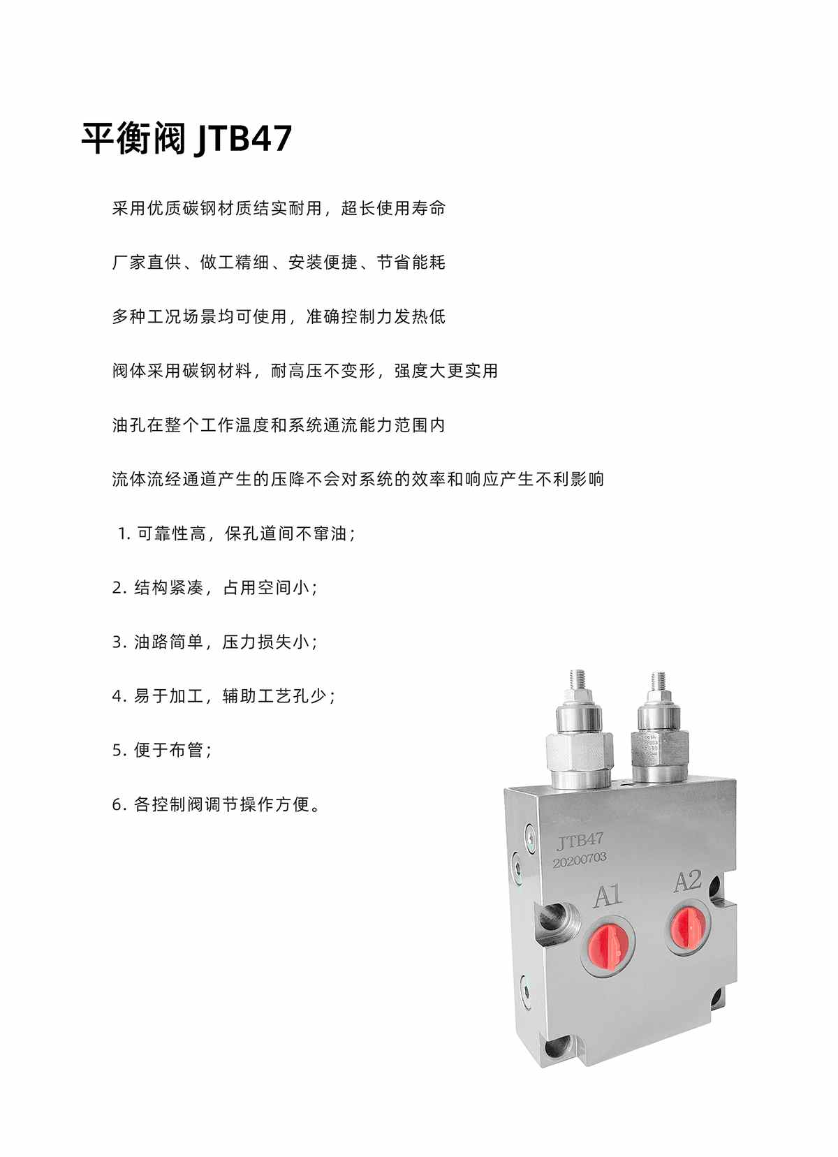 采用优质碳钢材质结实耐用,超长使用寿命 厂家直供、做工精细、安装便捷、节省能耗 多种工况场景均可使用,准确控制力发热低 阀体采用碳钢材料,耐高压不变形,强度大更实用 油孔在整个工作温度和系统通流能力范围内 流体流经通道产生的压降不会对系统的效率和响应产生不利影响 可靠性高,保孔道间不窜油;2. 结构紧凑,占用空间小;3. 油路简单,压力损失小;4. 易于加工,辅助工艺孔少;5. 便于布管;6. 各控制阀调节操作方便。