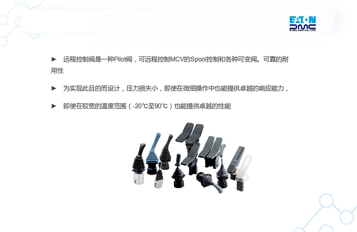 远程控制阀是一种Pilot阀,可远程控制MCV的Spool控制和各种可变阀。可靠的耐用性