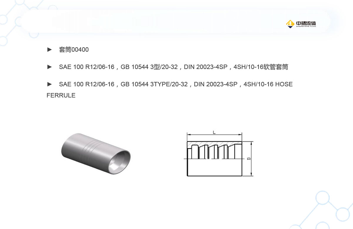 SAE 100 R12/06-16,GB 10544 3型/20-32,DIN 20023-4SP,4SH/10-16软管套筒 SAE 100 R12/06-16,GB 10544 3TYPE/20-32,DIN 20023-4SP,4SH/10-16 HOSE FERRULE