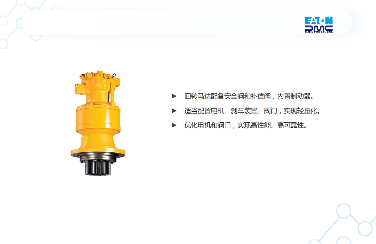 回转马达配备安全阀和补偿阀,内置制动器。